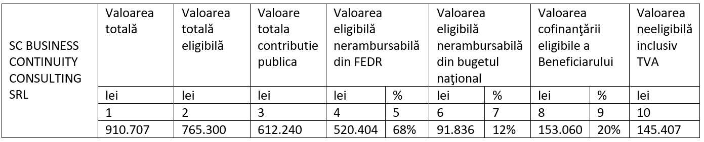 Business Continuity Consulting S.R.L. este beneficiar in cadrul